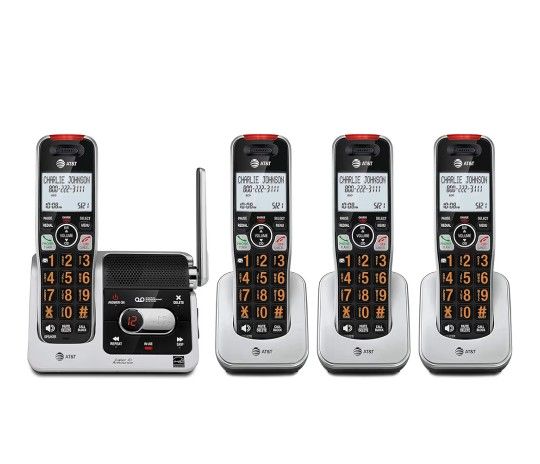 AT&T BL102-4 DECT 6.0 4-Handset Cordless Phone for Home with Answering Machine, Call Blocking, Caller ID Announcer, Audio Assist, Intercom, and Unsurpassed Range, Silver/Black Amazon price $119 Selling for $65 2