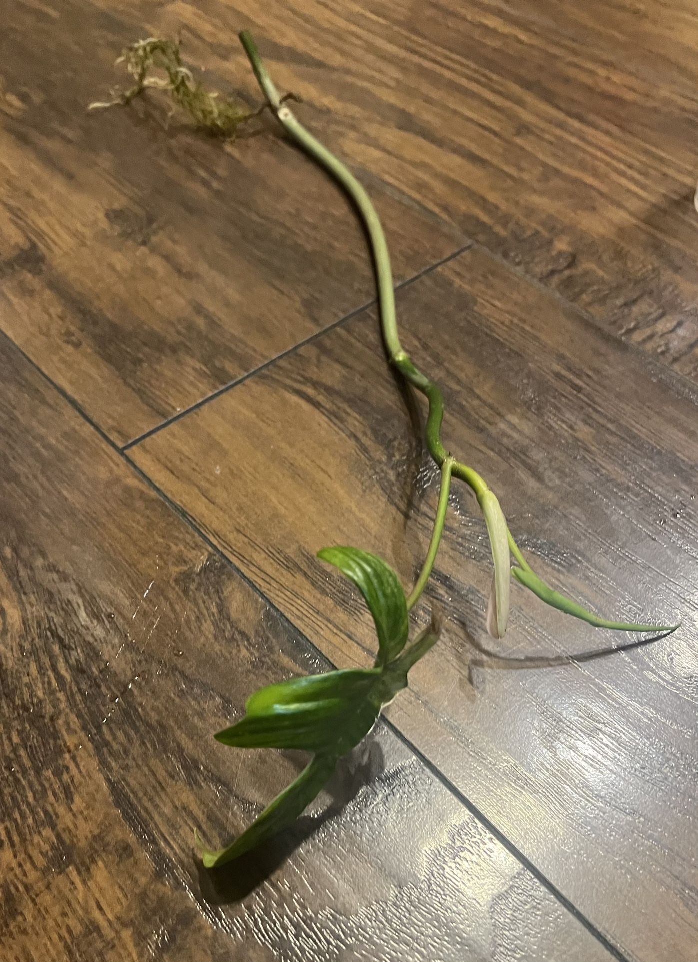 Oldest leaf doesn’t look the best but the new leaf is about to open.