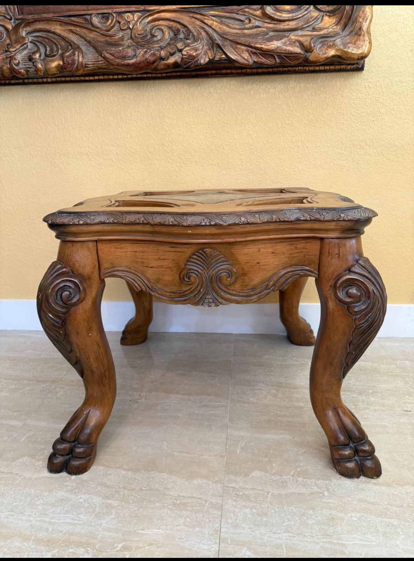 Michael Amini coffee table and end table, solid wood. Juego de mesas de sala de madera solidad, Marca Michael Amini. (2) mesas