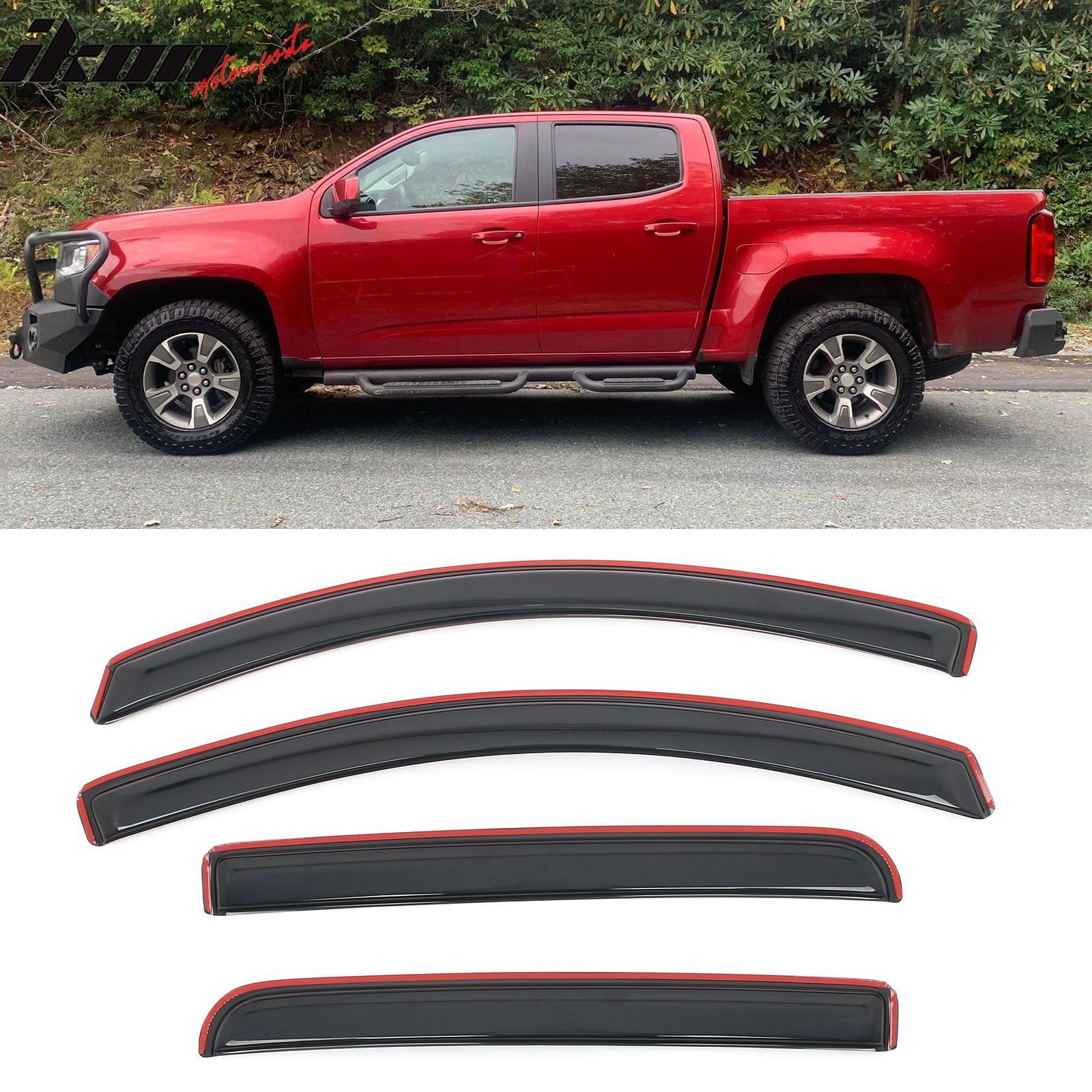 #WDIC-CVCLD15CC FITMENT: Fits 2015-2022 Chevrolet Colorado Crew Cab & GMC Canyon Crew Cab COLOR: Smoke/Tinted MATERIAL: Acrylic PACKAGE CONTENTS: 1x Set of Window Visors (4PCS) TYPE: Window, Body Side, Quarter Panel, Door, Roof PRICE: $29 OEM Replacement Number:15 16 17 18 19 Colorado Canyon Window Visors Vent Rain Sun Guards, 2015 2016 2017 2018 2019 2020 2021 2022, Chevy Chevrolet Colorado GMC Canyon, Base All Terrain Denali Elevation, AT4 Z71 LT SLE SLT WT LTZ ZR2 Crew Cab Pickup 4-Door 4Dr, Driver Passenger Side RH LH Window Visors Rain Deflector, Easy Installation Window Visors Deflector Vent Rain Sun Guard, Waterproof Side Window Visor Vent Shade Rain Guard Wind Deflector, No Drilling Required Side Door Window Weather Deflectors, Self-Adhesive In Channel Side Door Window Visors Air Deflectors