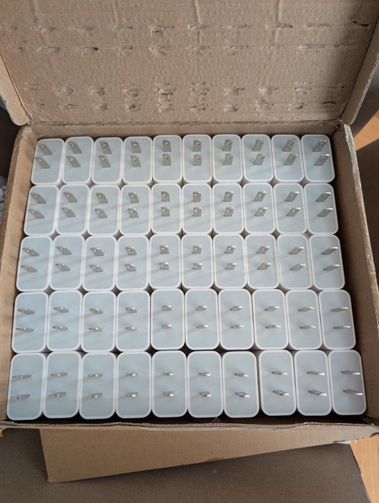 50 count lot of brand new USB fast charging adapters capable of using both USB-A and USB-C cables.