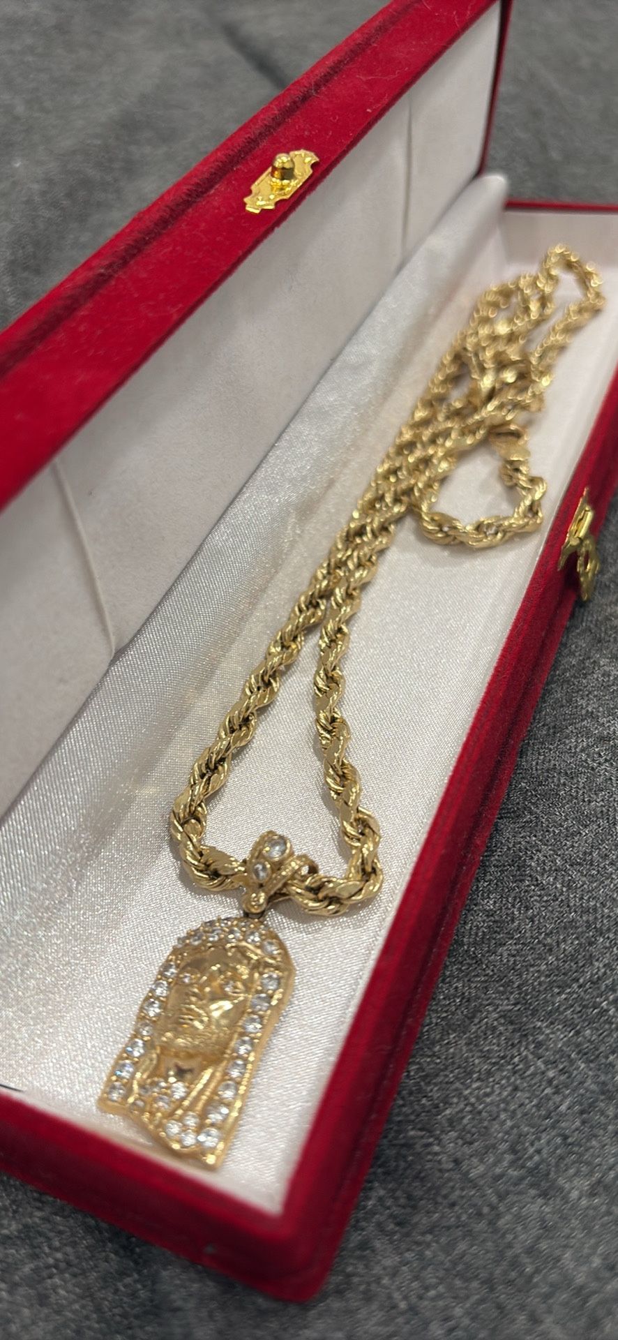 14K Gold, Brand New. Looking To Gift This Beautiful Accessory Of Jewelry To One Of You. Red Velvet Necklace Box Included! I’m Leaving it at $1200. Can Negotiate In Person For Sure But Only Genuine And Serious Interactions/Inquiries. God Bless.
