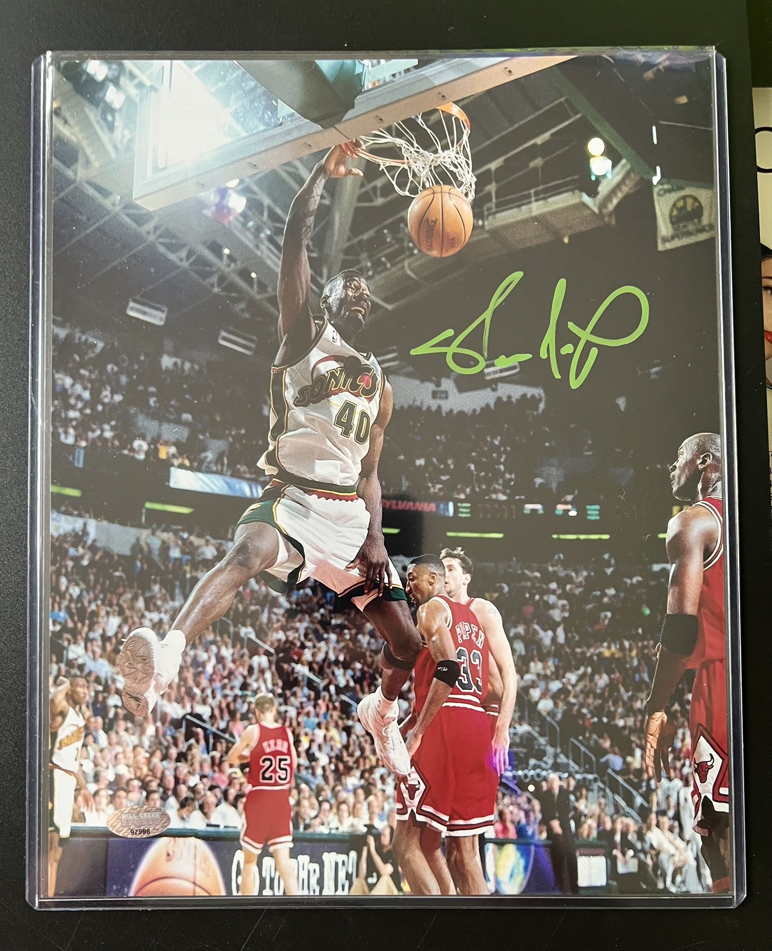 8x10 photo signed by Shawn Kemp. Comes with COA from Mill Creek Sports.