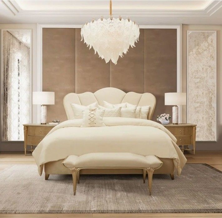 Michael Amini Kind Bedroom 4 Pcs Set. Bed, Bench 2 Nightstands
