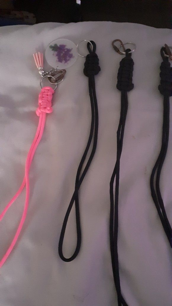Handmade paracord 550 rope lanyard keychain and bracelets I've made.very sturdy,lasts a long time. Bracelets are going for 5.00,the keychain lanyard is 7.00