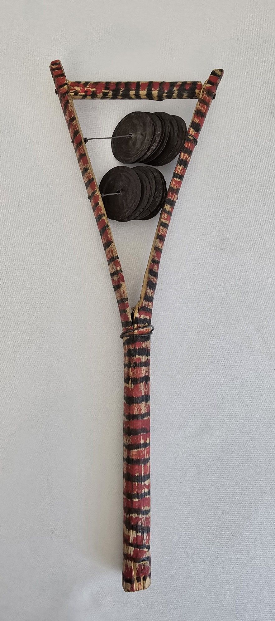 African Fork Sistrum Shaker Y-Rattle Gourd Bottle Cap Rattle VGUC Vintage