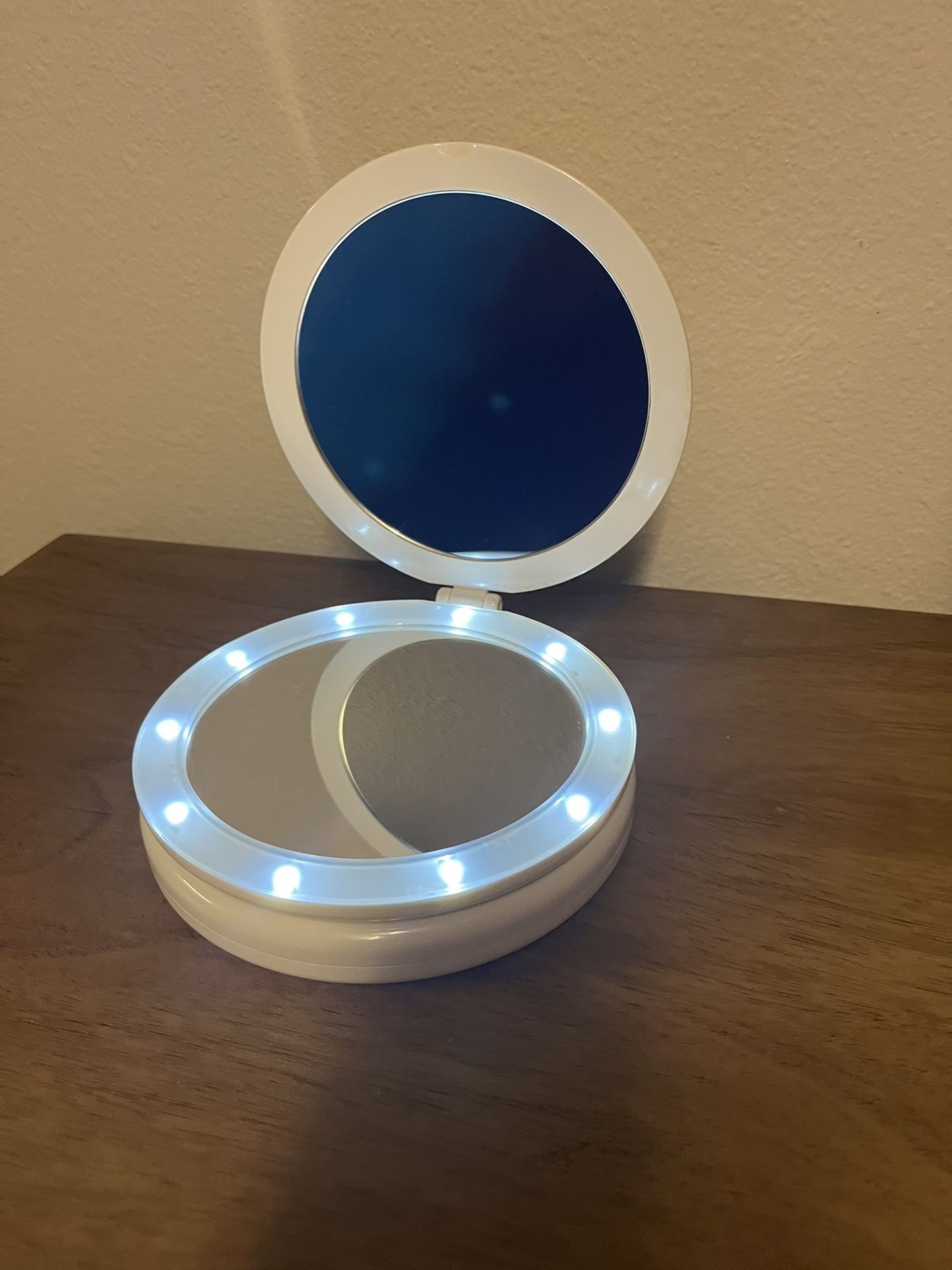 Perfect for your vanity or on-the-go! This Mary Kay folding mirror is super convenient and gives you the perfect lighting anywhere. ⢠Condition: Excellent / Like New. ⢠Features: Round design, built-in LED lights, foldable, and adjustable height. ⢠Perfect for: Detailed makeup application, travel, or small spaces. š Location: Katy, TX 77494 š¦ Pickup: Local pickup only. DM if interested!