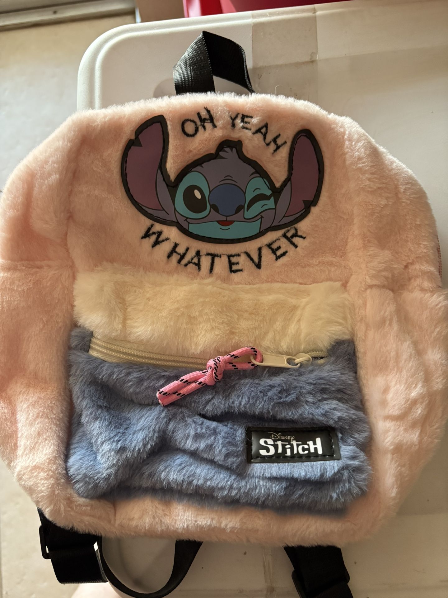 It’s awesome! Pink, Fluffy and it’s Stitch!!!! NEW Could use too as a purse 😉