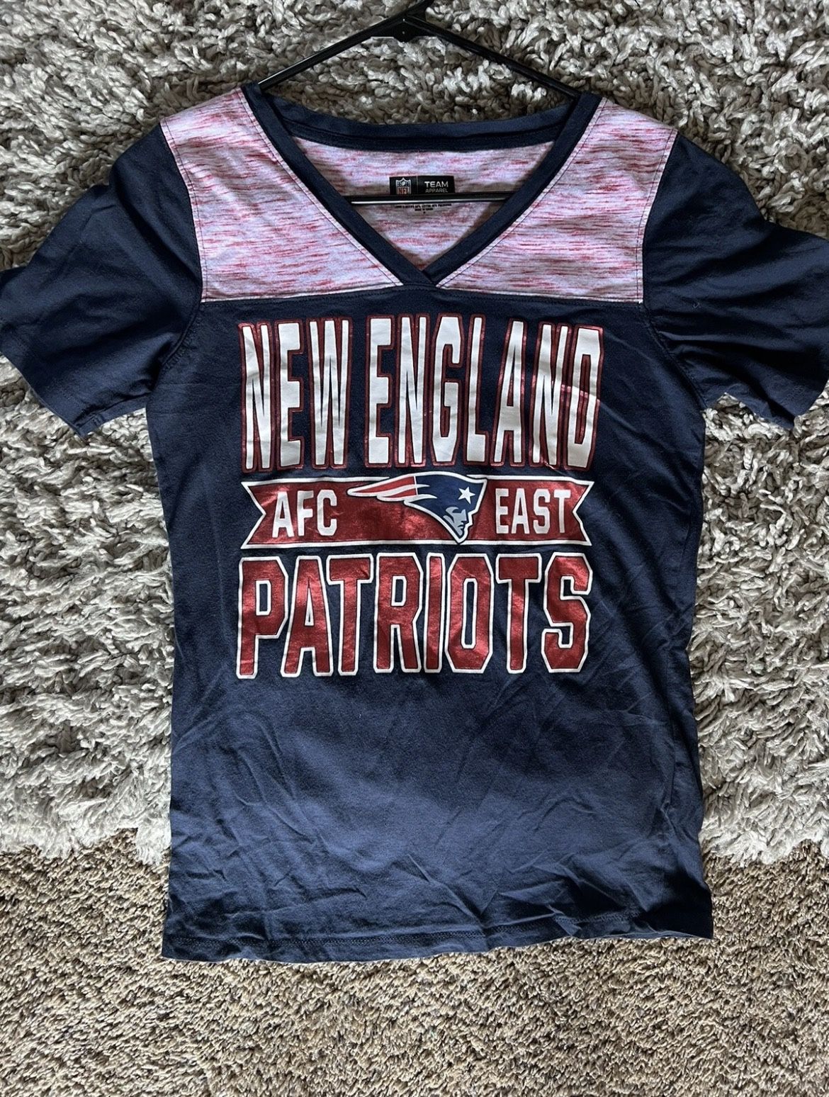 Size M Women’s NFL New England patriots navy Blue Pink v Neck