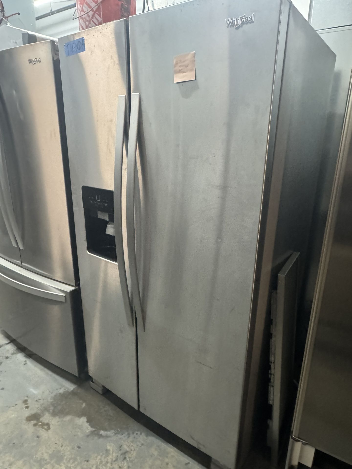 Whirlpool 36” Side-by-Side Refrigerator – Stainless Steel Upgrade your kitchen with this Whirlpool 36-inch side-by-side refrigerator, designed for everyday reliability and modern style. Featuring a stainless steel finish, spacious interior, and an exterior ice and water dispenser, this unit is a great fit for most kitchens. Key Features: • 36” Side-by-Side Design • Whirlpool Brand • Stainless Steel Finish • Exterior Ice and Water Dispenser • Adjustable Glass Shelving • Multiple Storage Drawers • Large Door Bins • Bright Interior Lighting • Reliable and Efficient Cooling System Includes a 4-Month Warranty This refrigerator has been professionally inspected, tested, and cleaned. It is in good working condition and ready for installation. Contact us for pricing and availability. Hablamos español