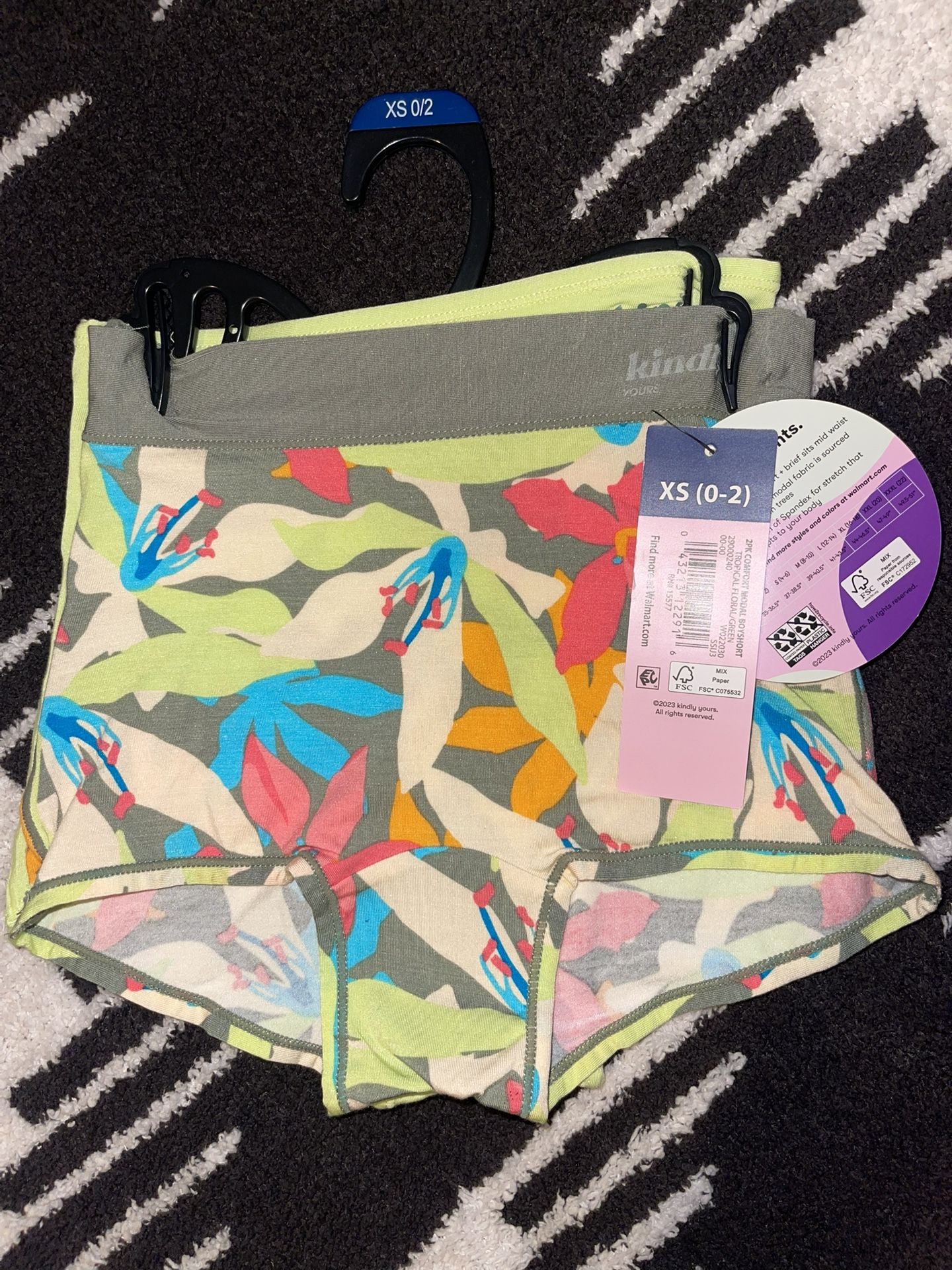 Kindly Yours Women’s Sustainable Comfort Modal Boyshort Underwear, 2Pack, Size XS