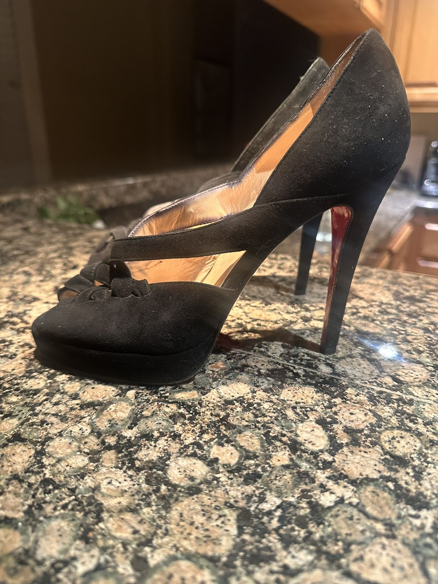 Christian Louboutin Black suede Peep Toe Heels Size 7.5