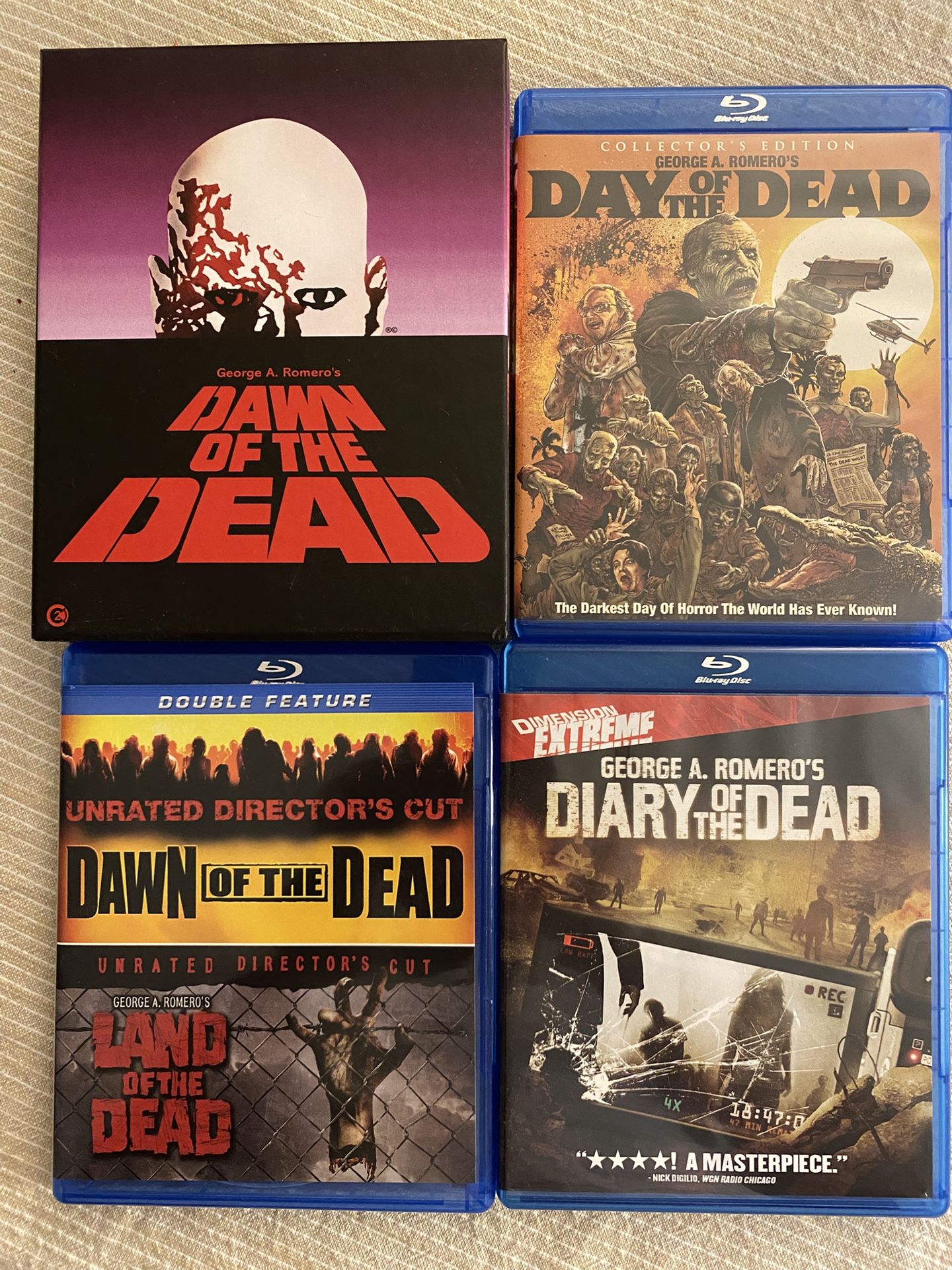 Good condition. Comes with: - Dawn of the dead box set - Dawn of the dead (Snyder version) - Day of the dead - Diary of the dead - Land of the dead