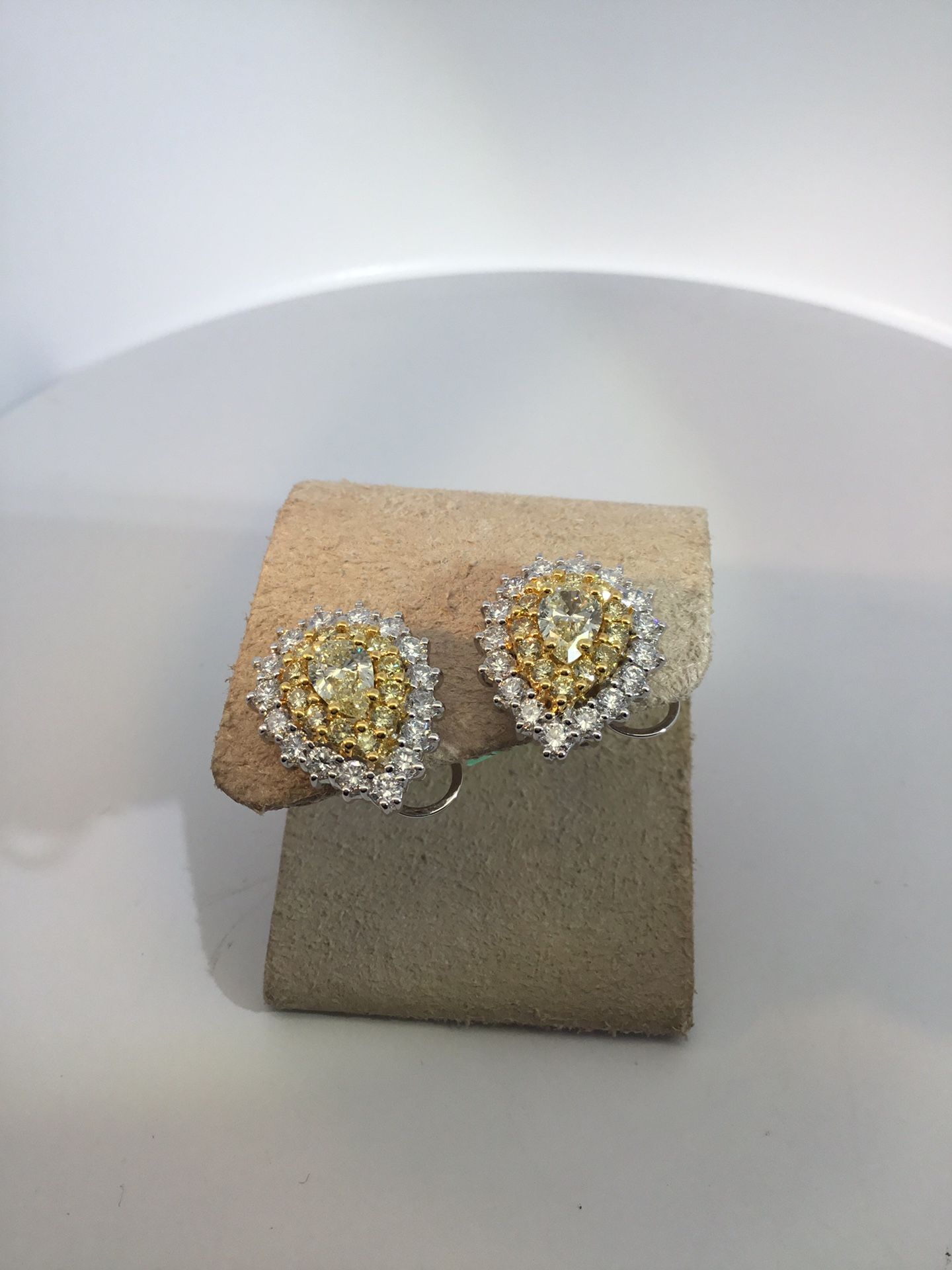 Ladies, The Stone, 18 Karat Study Earrings With 21.00TWFear Diamond With 24 0.72Tw Round Diamonds And 1.6 two Other Stones