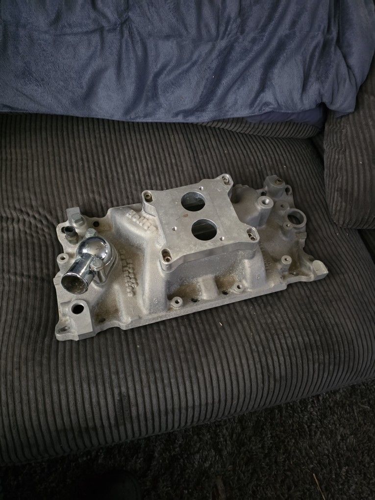 Works on all Small Block Chevy engines has a removable adapter for throttle body injection. Also has a egr block off plate also removable 200$
