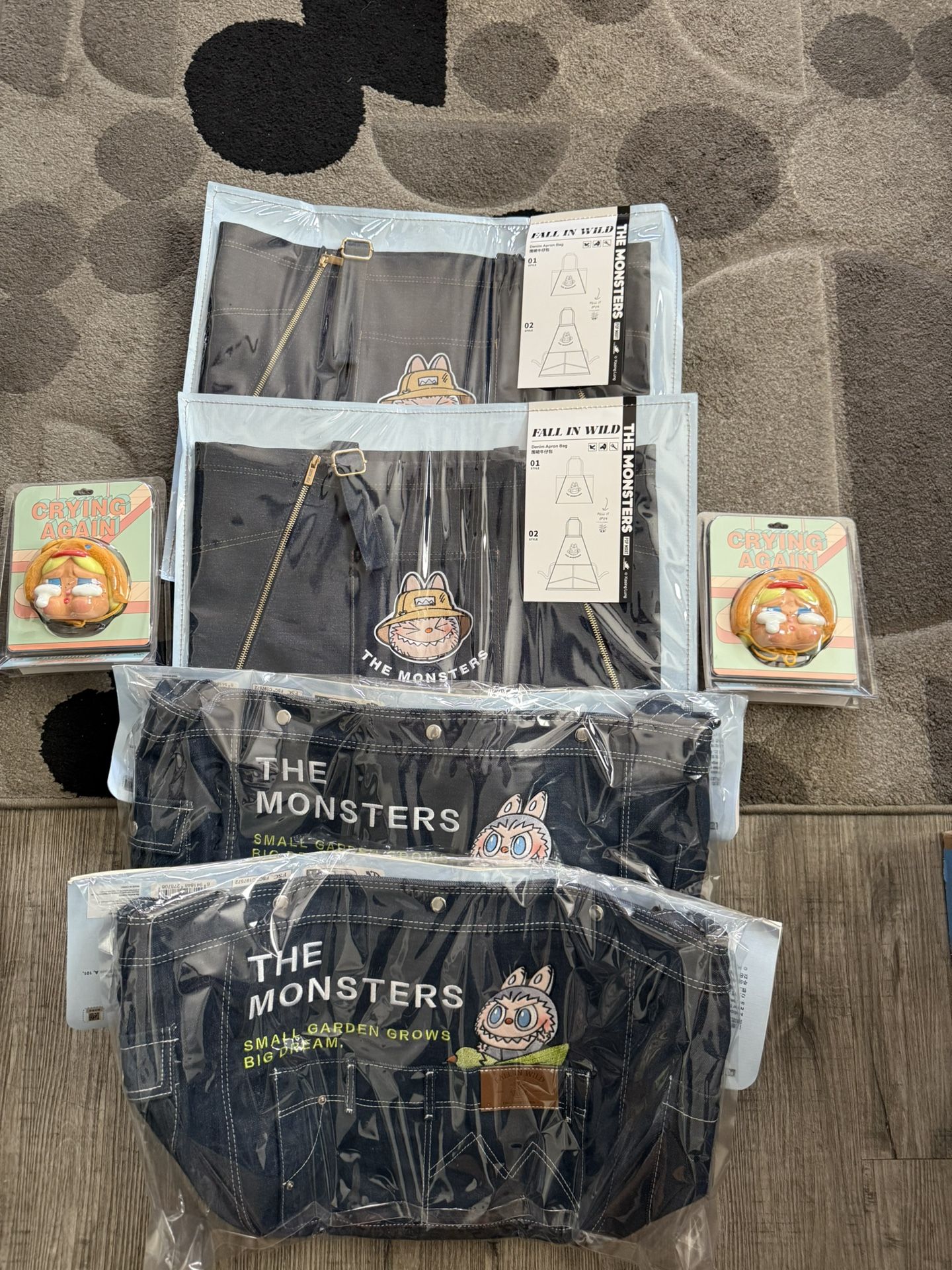 2 BRAND NEW STILL IN BAG FALL IN WILD APRON BAG 2 CRYBABY CRY AGAIN EARPHONE CASE 2 FALL IN WILD MESSENGER BAG