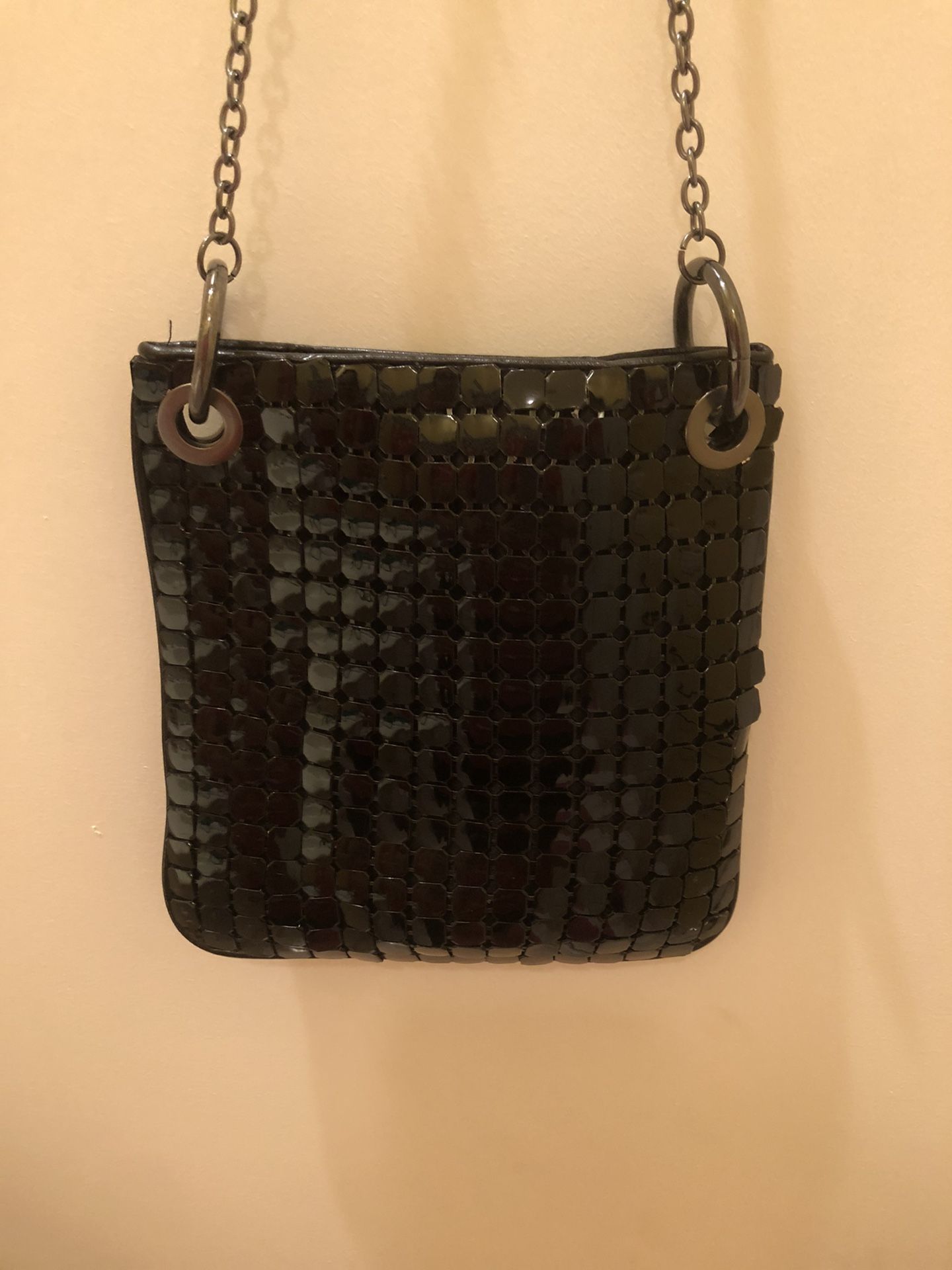 New without Tags Vintage Style Metal Mesh Black Crossbody Bag with Chain Strap Approximately 7.5" x 7"