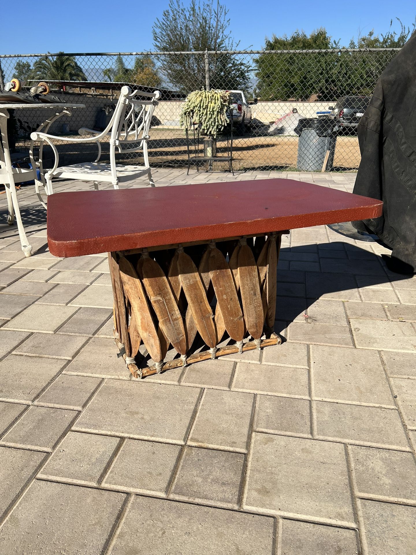 Mesa de Centro tipo equipal. Mide 36 pulgadas de ancho y 19 de alto.