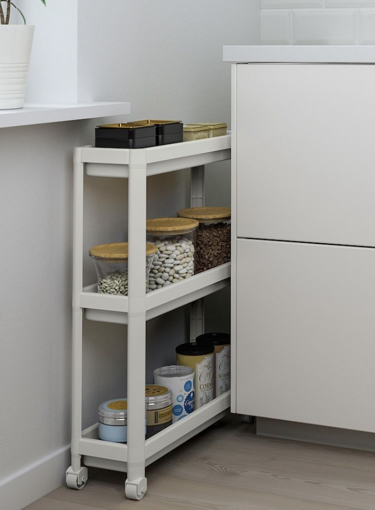 White 3 Shelf Narrow Rolling Trolley /bookshelf On Casters