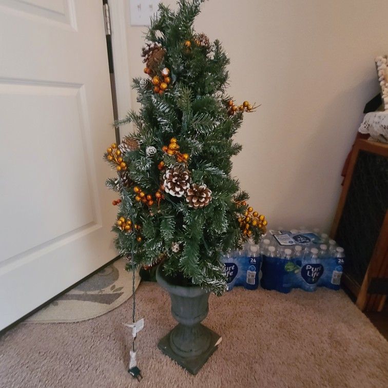 Small tree stands about 40 inches tall needs new lights small chip on the bottom as shown in second picture Located in spring hill