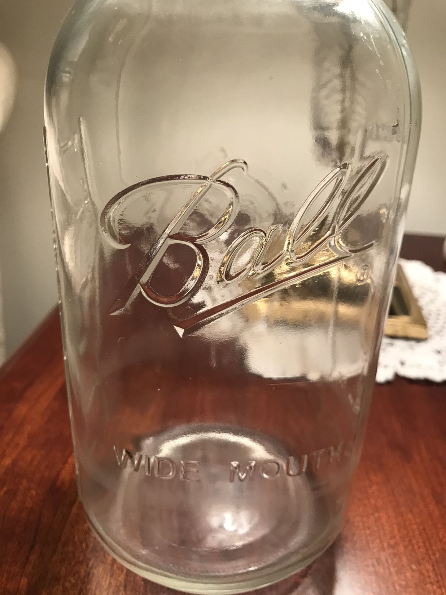 Ball wide mouth 16oz jar. Great condition. Does not come with lid. Great home decoration