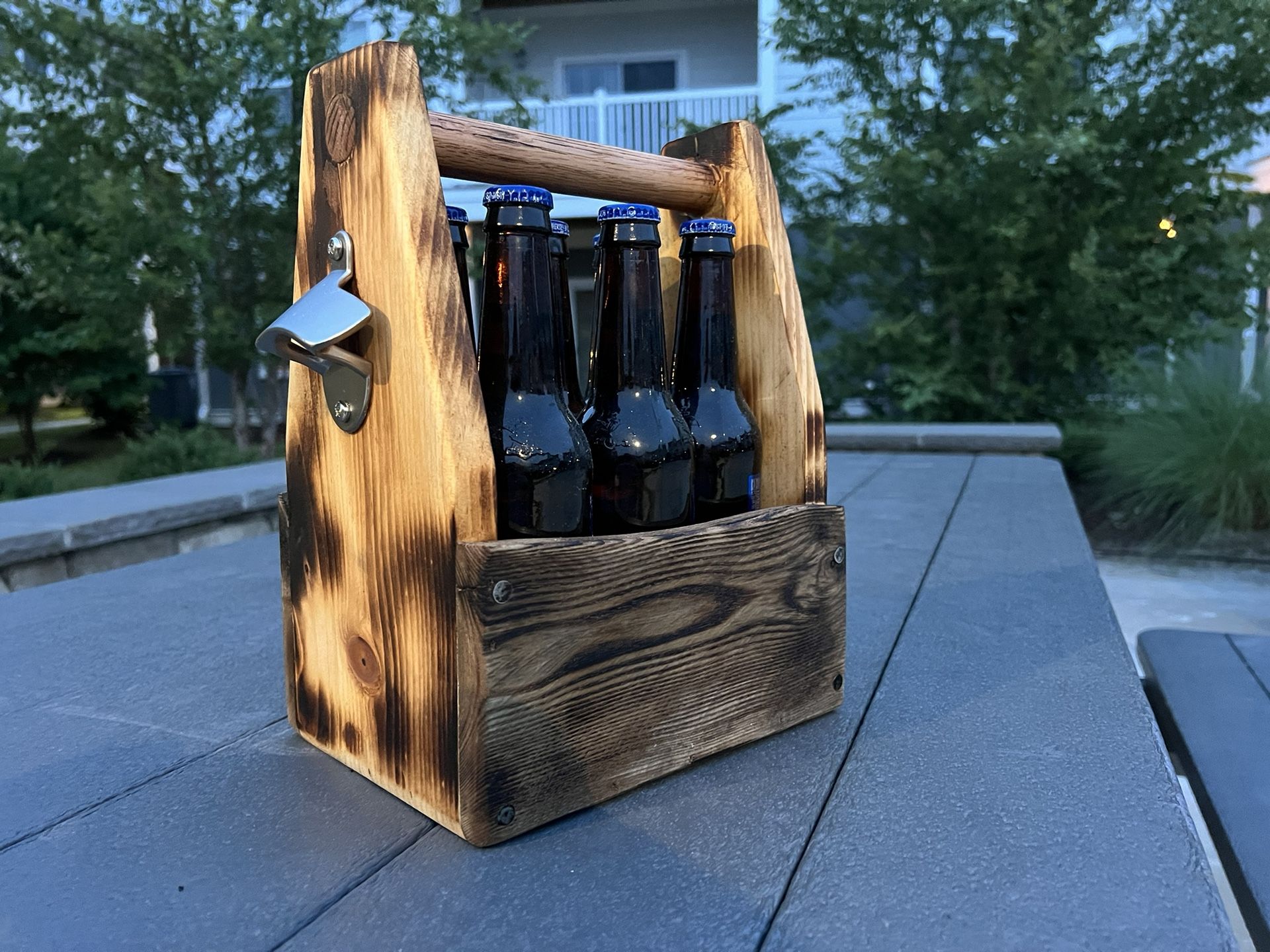 Rustic beer caddy with a bottle opener. The bottom and sides are made with poplar the front wood is palette wood. Added old nails to complete the look. This item is made to look rustic and just like items made years ago this is made the same. Every board was cut, glued and nailed to last. I burned the wood to give it some character and applied 3 coats of Danish oil. This is a perfect gift for the beer drinker or even for a display. I will deliver this for $5 extra as long as you are in the Hampton Roads area.