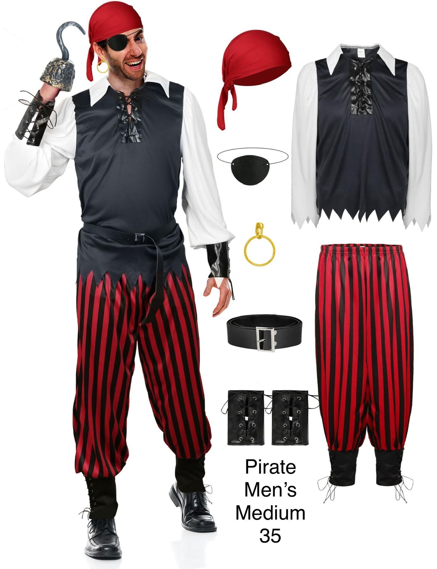 Men’s Pirate Costume Medium Halloween / Disfraz de Pirata Mediano Hombre