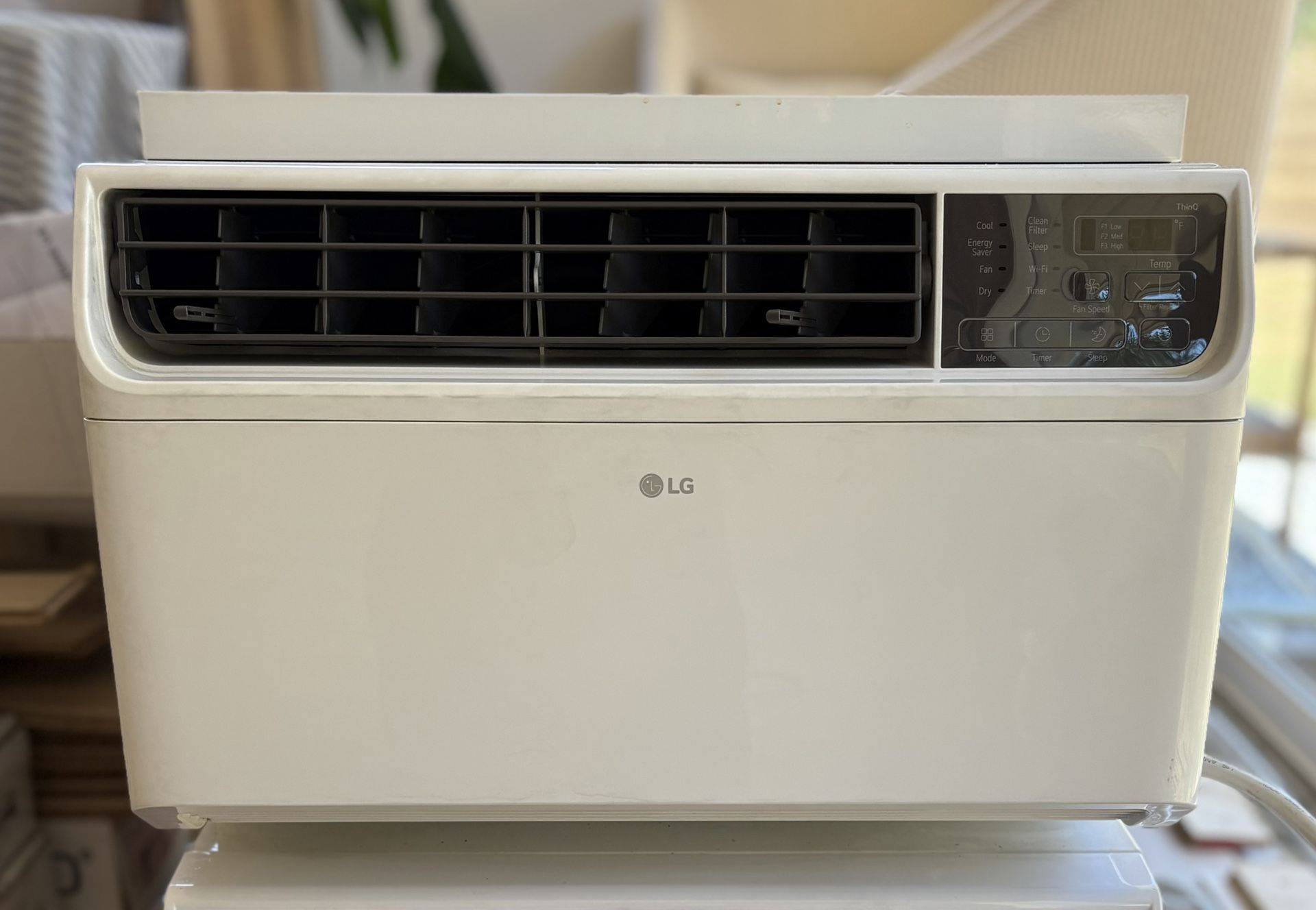 LG - 6,000 BTU DUAL Inverter Smart Wi-Fi Enabled Window Air Conditioner - (LW6023IVSM). Retails: $416. Used only last year intermittently. Measures: 19.56" W x 12.36" H x 24.52" D. Comes with instructions and remote. - Faster cooling with less energy – Cooling up to 250sqft - Designed for ultra-quiet operation at as low as 44 dB, perfect for bedrooms and home offices. - Control comfort from anywhere – With LG ThinQ app connectivity, turn AC on / off, adjust settings, and monitor energy usage-right from your phone. - Eliminate hot spots and stay evenly cool due to 4-way air direction. - Features Sleep Mode, Auto Restart, and 24-hour timer. - Works with 'Hey Google' and 'Amazon Alexa'.