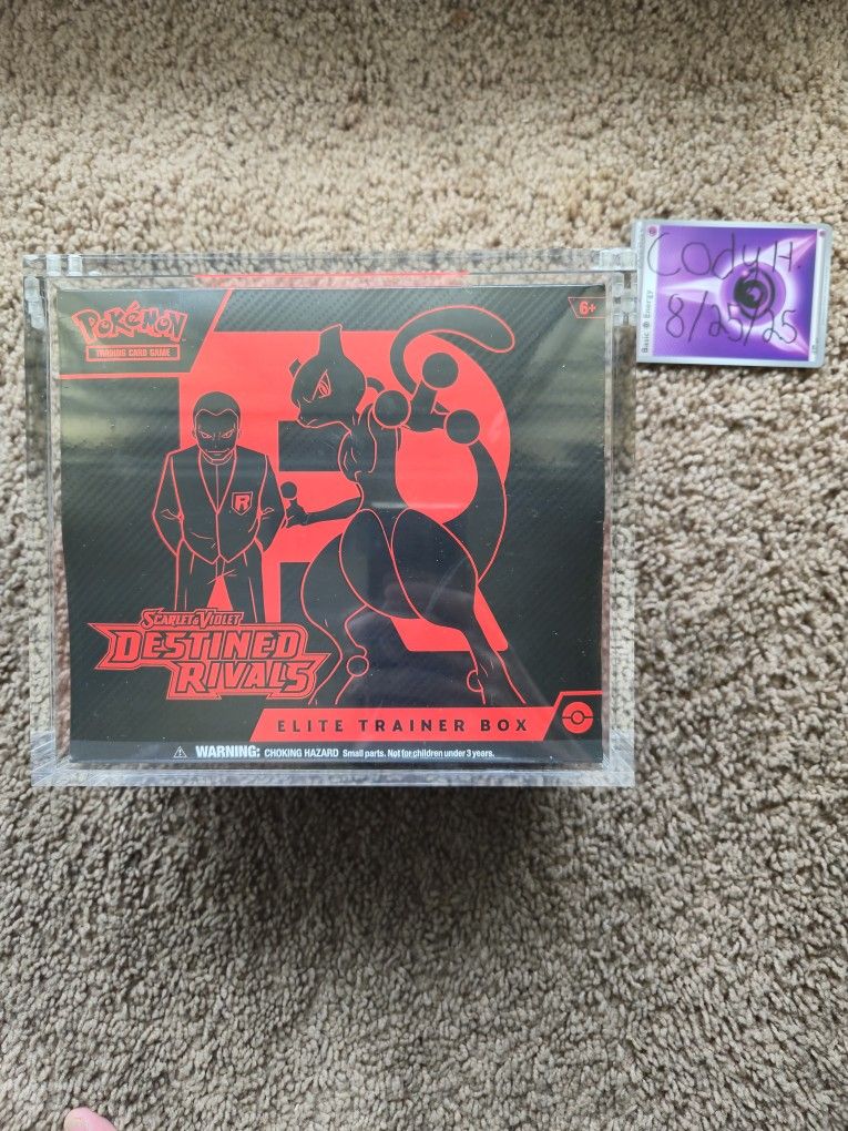 Brand new sealed Destined Rivals elite trainer boxes. One of the newest pokemon TCG sets full of great chase cards. Reach out with any further questions. **DOES NOT INCLUDE ACRYLICS***