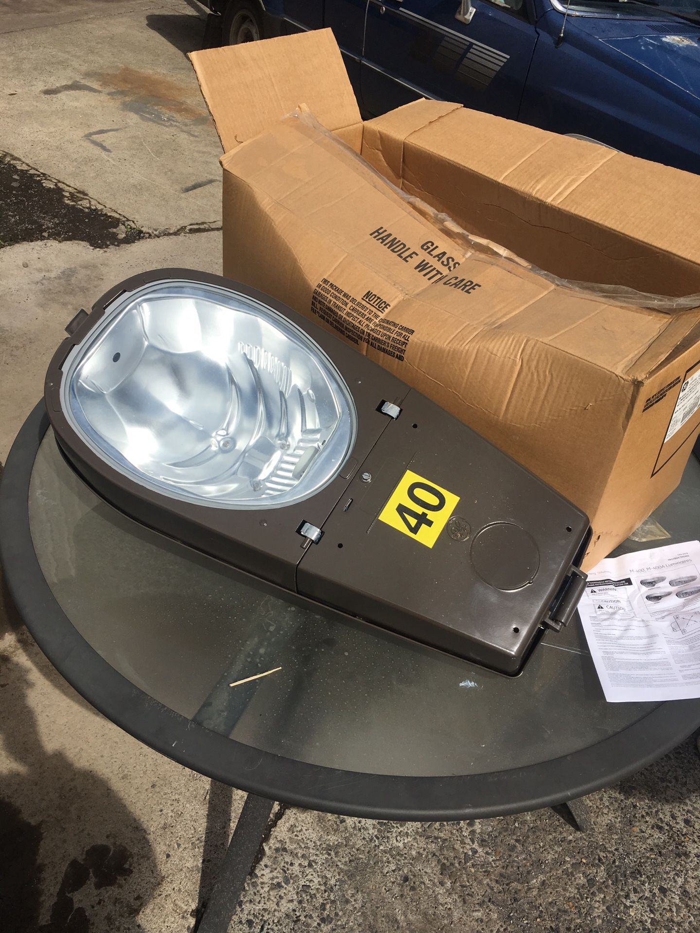 Selling a few 400w GE lights fresh out of the box never used great for lighting up large areas outdoors. Only asking 40 a piece OBO we have at least 8 of them for sale. The more you buy the better the deal.