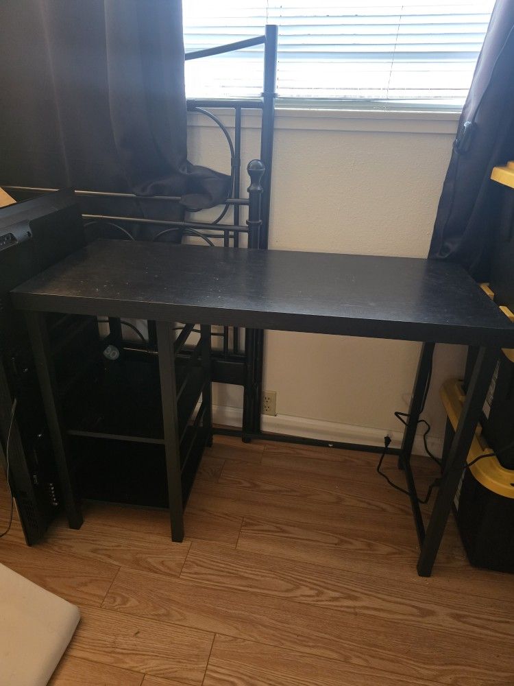 The Adjustable Storage Desk in black by Room Essentials is a stylish and functional computer desk. Used but still in great condition
