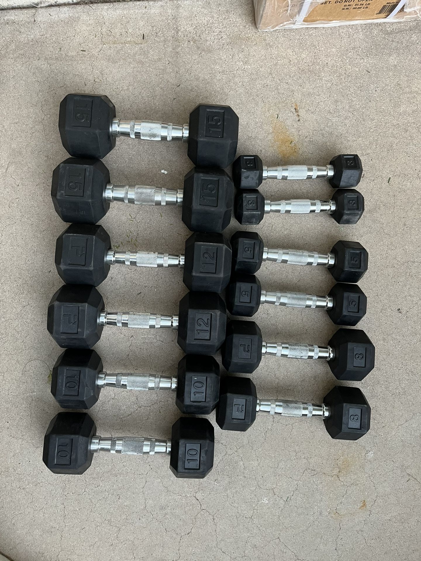 3-15lb Hex Rubber Dumbbell Set Weights Pairs of 3,5,8,10,12,15 Pickup Lindsay and McKellips