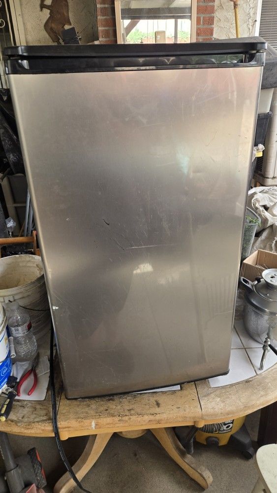 Sanyo SR-3770S Refrigerator 3.7 Cubic Foot Counter-High Refrigerator features a coated stainless steel door, can dispenser in door, adjustable thermo dial, reversible door hinge and molded countertop. Refrigerator has internal freezer compartment.