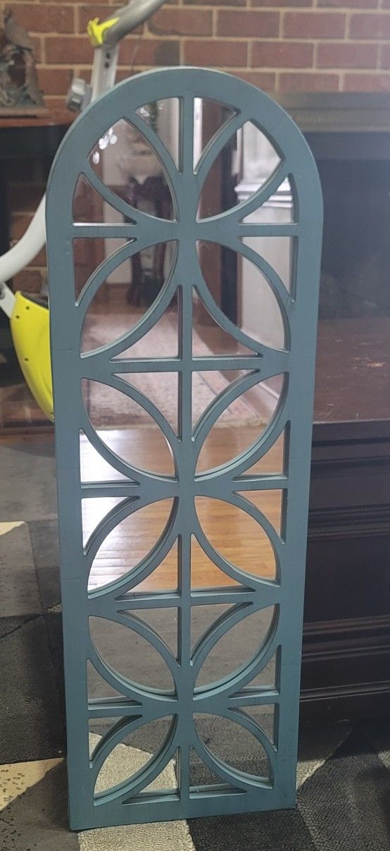 Decorative mirror, the blue part is made of plastic. Measures 36" × 12" North Raleigh