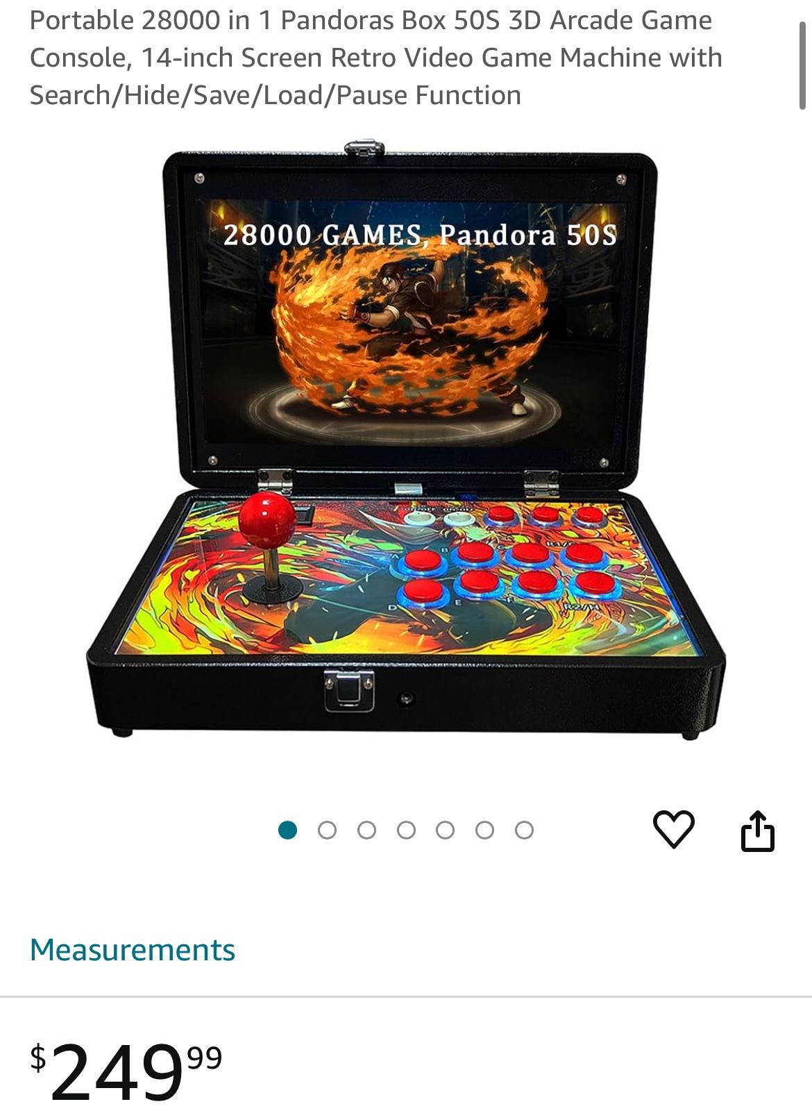 Portable 28000 in 1 Pandoras Box 50S 3D Arcade Game Console, 14-inch Screen Retro Video Game Machine with Search/Hide/Save/Load/Pause Function