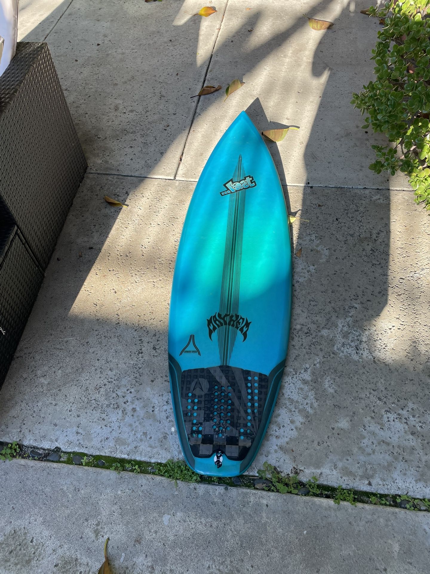 Lost Subdriver with sick blue/green color. Great for SD waves, even when they’re mushy. Comes with a soft board bag if you want it. 5’11 x 19.75x2.50 31L Futures A couple lil Solarez jobs on it, but watertight and ready to go. Pick up in OB. Cash/venmo only