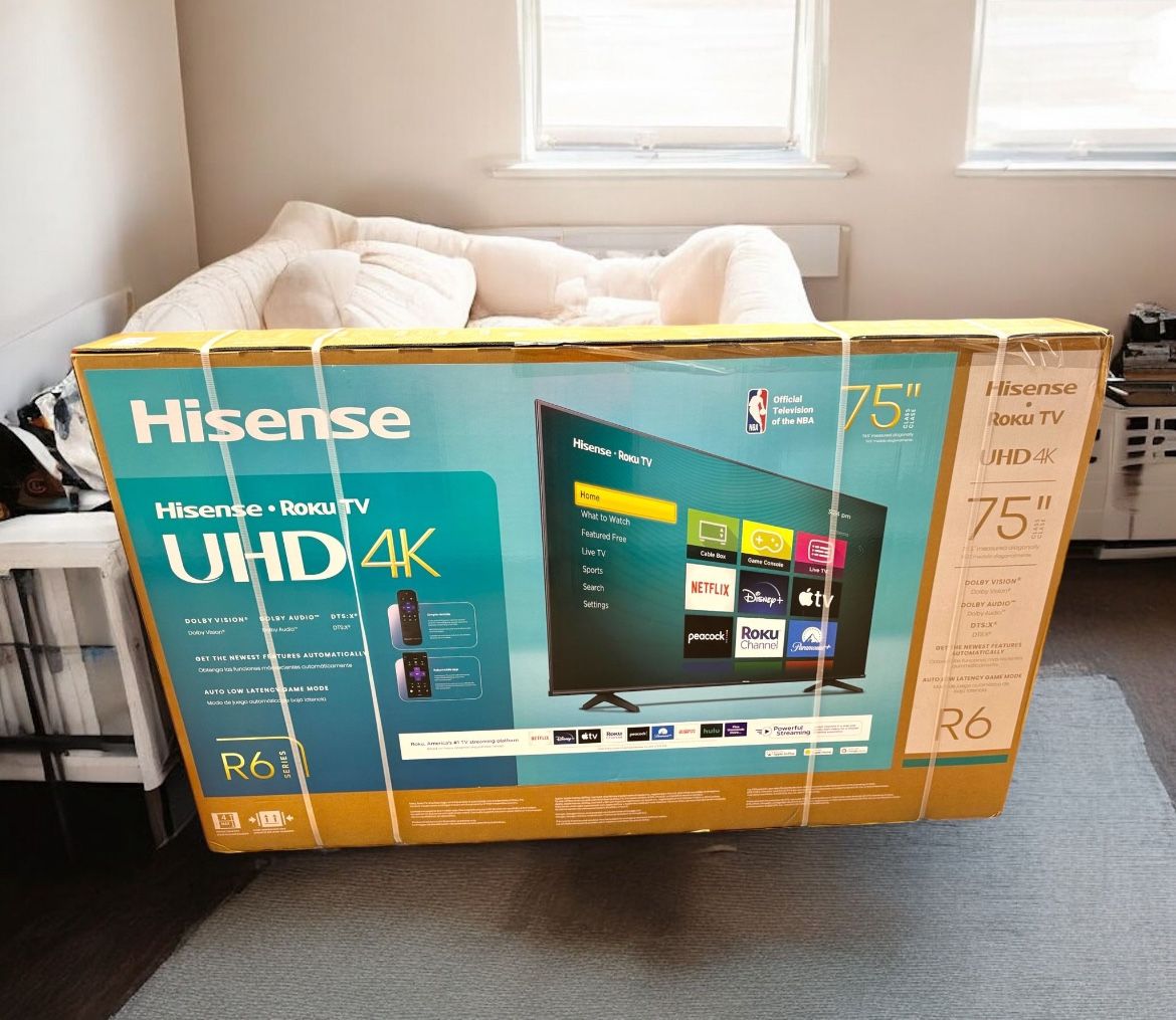 HD356 75R6 75” Hisense smart Roku 4k tv