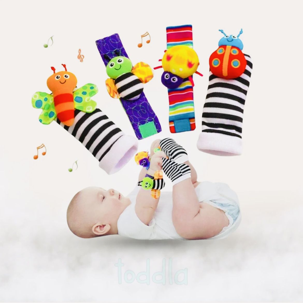 Babies like to watch and play the fingers, it’s fun for the baby to play if he/she wearing a Rattle on hand. Rattle socks can keep baby's feet warm and bring more fun to feet movement!