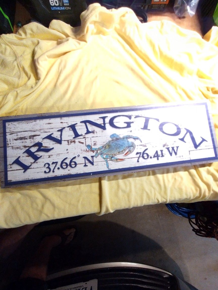 Wood Wall Plaque. Irvington Virginia; located in the Northern Neck area. Wall hanger on back . Made in the USA. Nice decorative piece. Cash only. Pick up near Berrywood Rd Virginia Beach