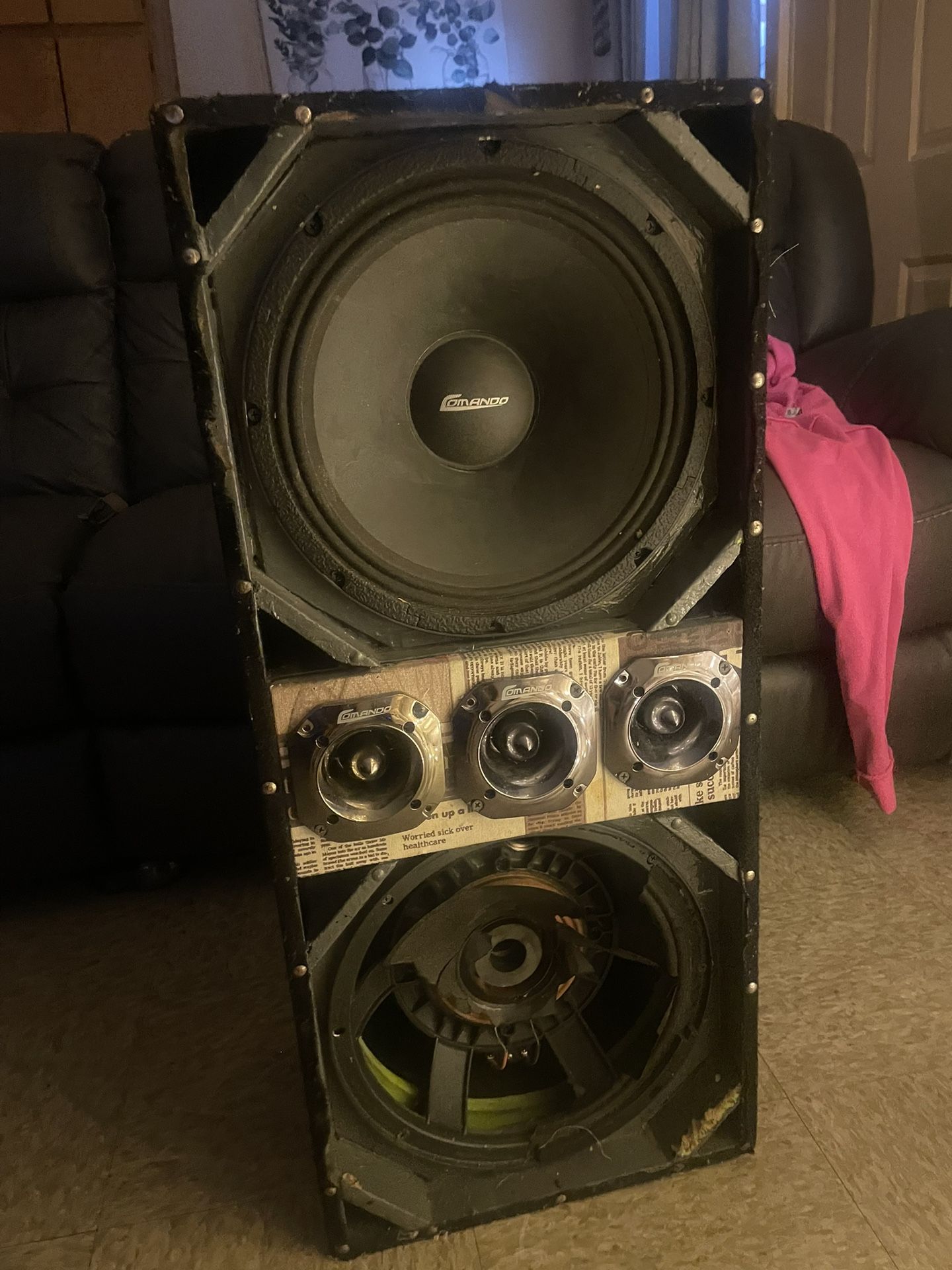 Chuchero speakers and tweeters are worth 300 each one speaker on the bottom blown . has a Medusa plug , one of the loudest speakers you’ll ever find out there.