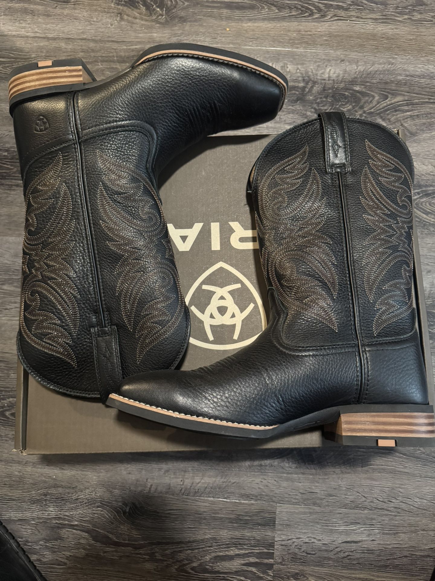 Size 11EE Ariat Ricochet Black Carbon Leather Boots, never worn outside only tried on at the store, comes with random ariat box 250 at store, selling for 200