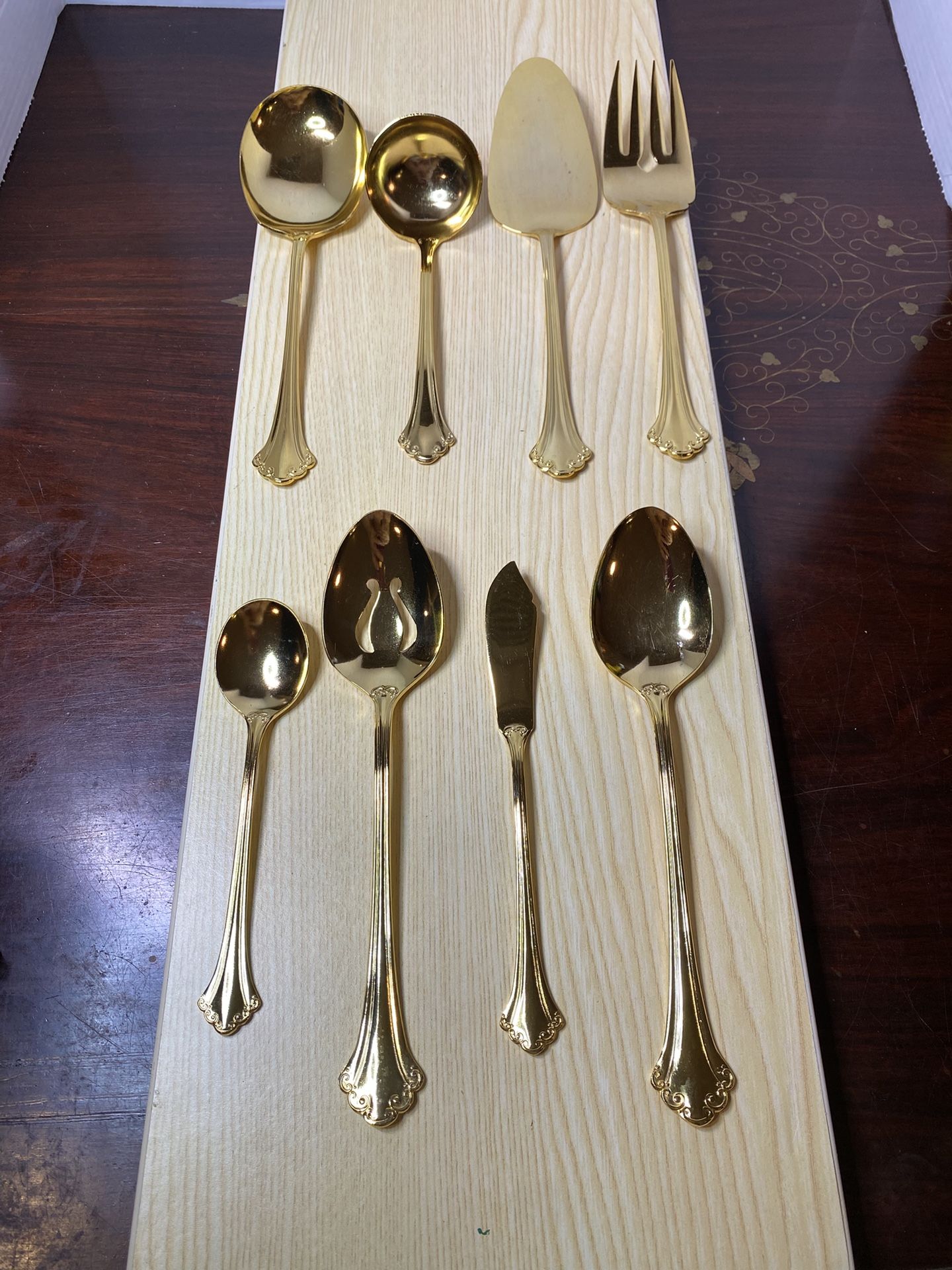 EP SS Alexandra Flatware Serving 8 Piece Set Gold Tone Japan