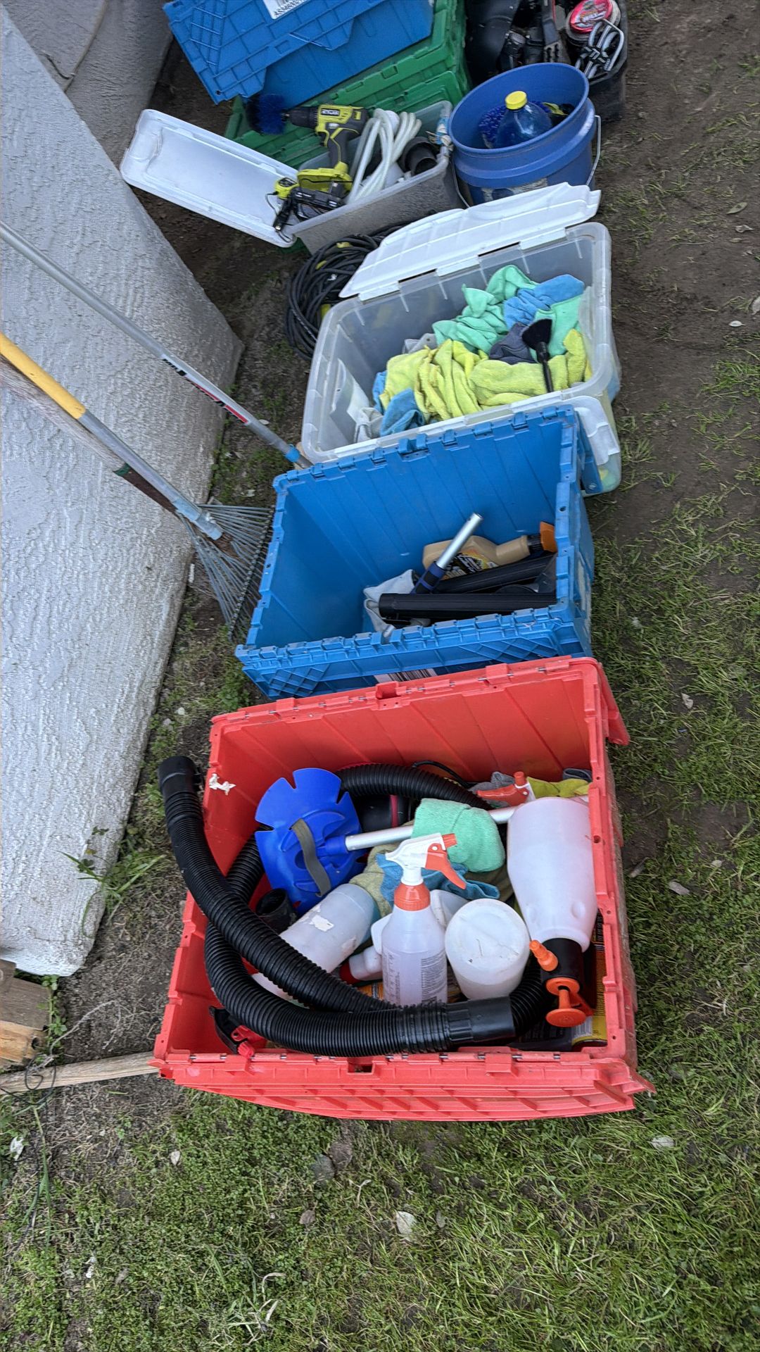 These items were gently used just need to be wiped down started detailing and gave up must take all containers are included and there’s a shovel in a rake and a scrub brush as well. Everything is free repeat everything is free. Don’t wanna have a yard sale. just wanna get rid of it to someone who could use it instead of spending money. You can have it for free. I cannot hold. Sorry if you tell me you’re coming I’ll give you time to get here