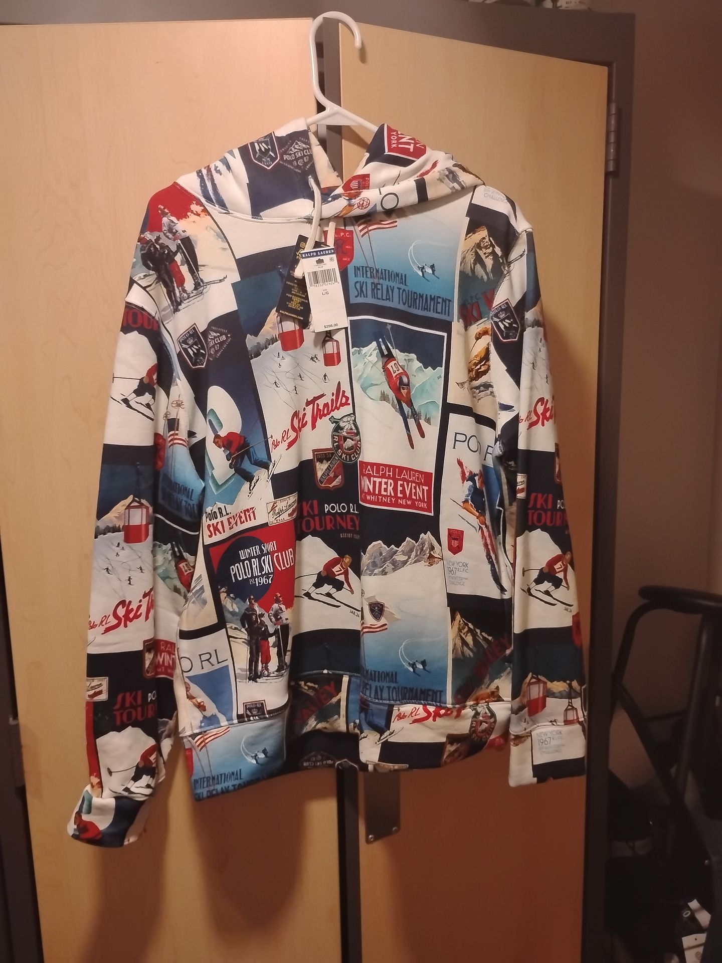 Polo Ralph Lauren Men's Blue Ski Graphic Vintage Fleece Pullover Hoodie, L/G. Originally $298 tags are still intact.