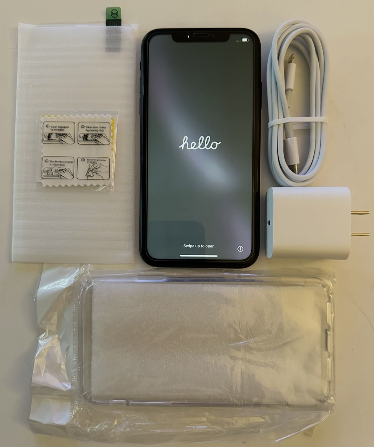 • In excellent condition Black iPhone 11 64GB • Factory unlocked for any carrier in any country ready to be connected • Clean IMEI & iCloud • All original Apple Parts; no scratches, cracks, dings or dents on screen or back of phone • Also comes with 1 brand new fast charger with box & cable, 1 brand new clear phone case & 1 brand new screen/camera protector already installed on the phone for your convenience • More iPhone’s for sale on my page, thank you!