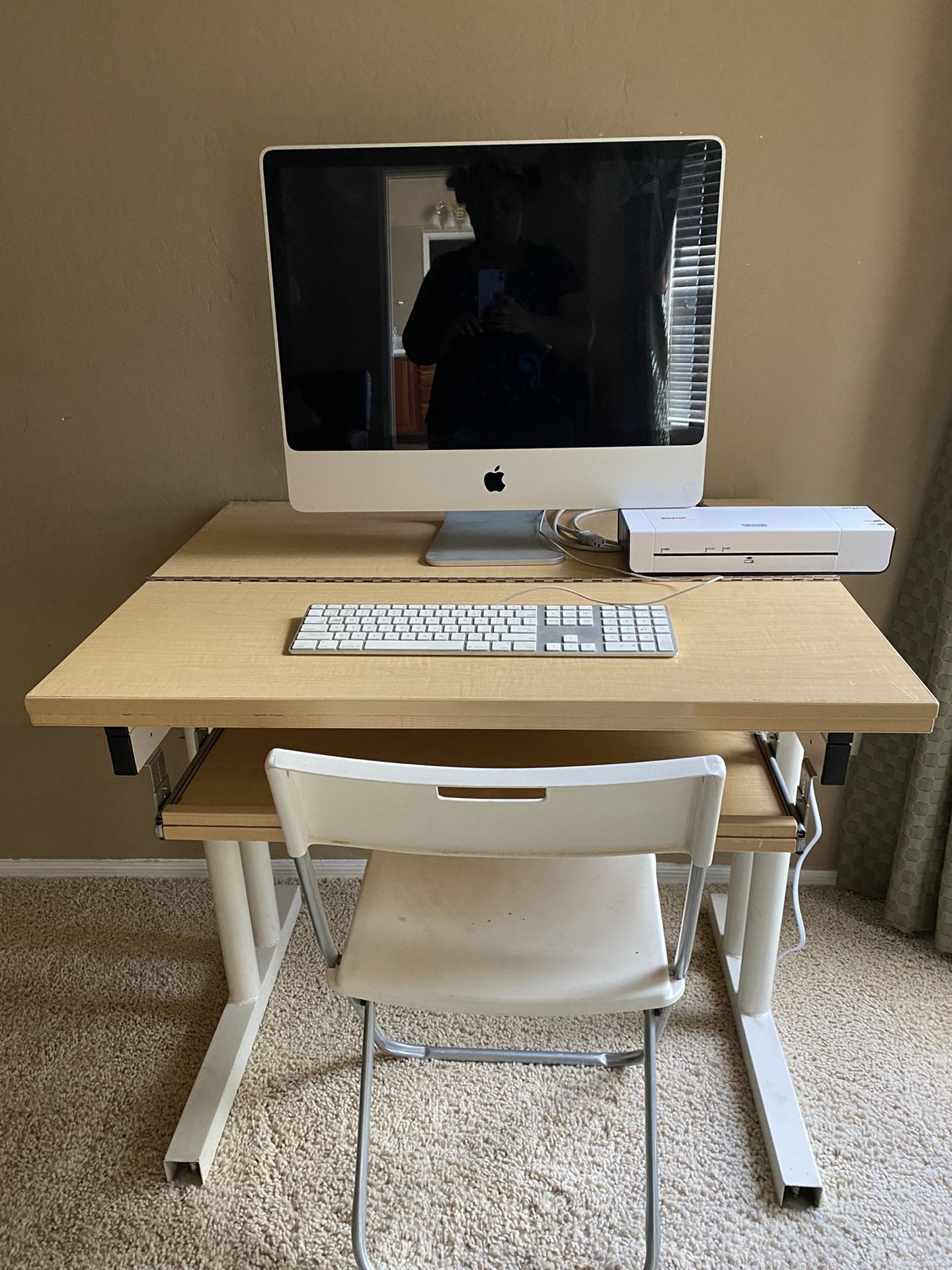 Used Laminate & Metal Desk with Outlet plugs. **Delivery Available** I have (4) Desks Available for Sale