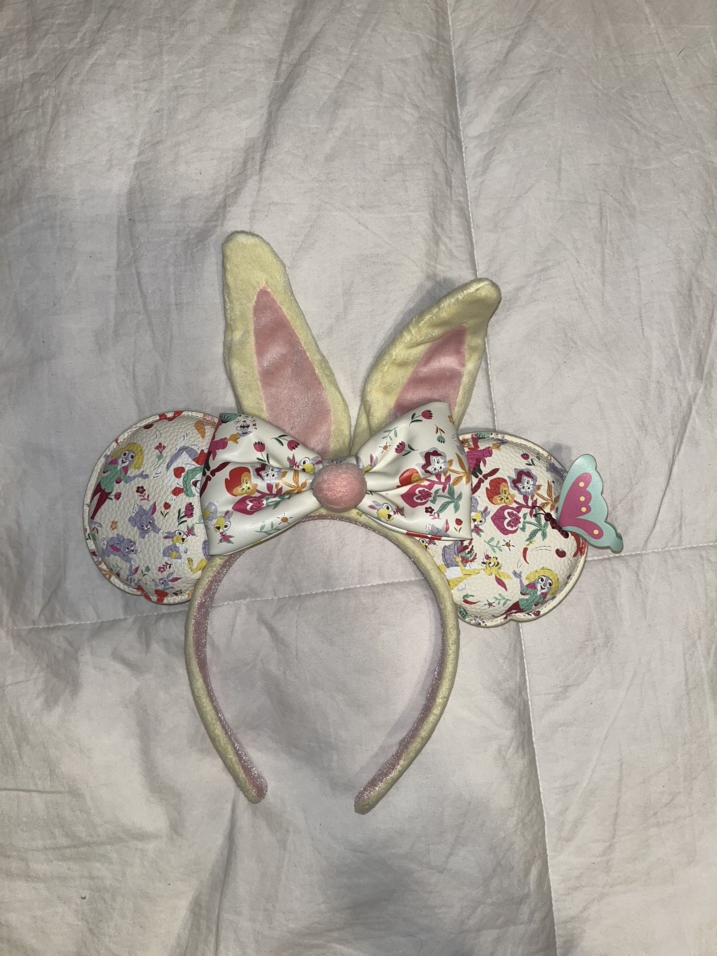 Bunny inspired adult disney ears. Bunny ears on top are adjustable! Used but in good condition. The disney tag on the side of the ears is cut off.