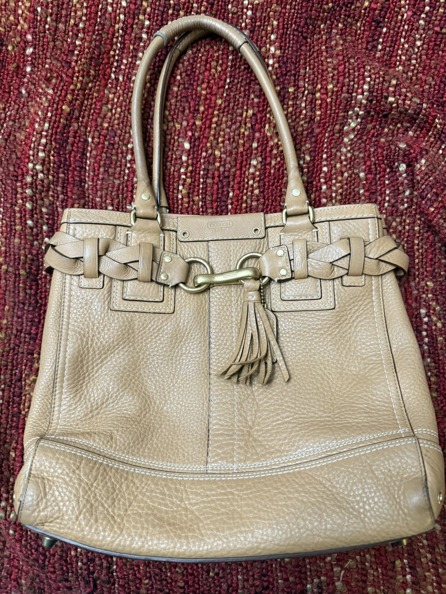Coach 10530 Tan “Hamptons” Leather Satchel