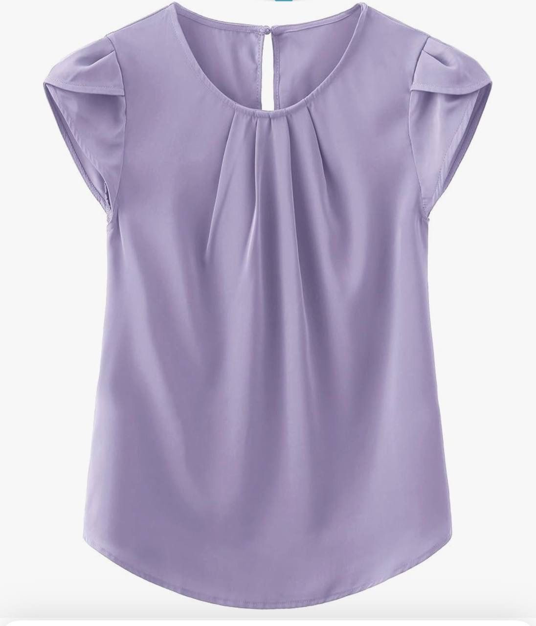 Women's Casual Round Neck Basic Pleated Top Cap Sleeve Curved Keyhole Back Chiffon Blouse. Size: 2XL