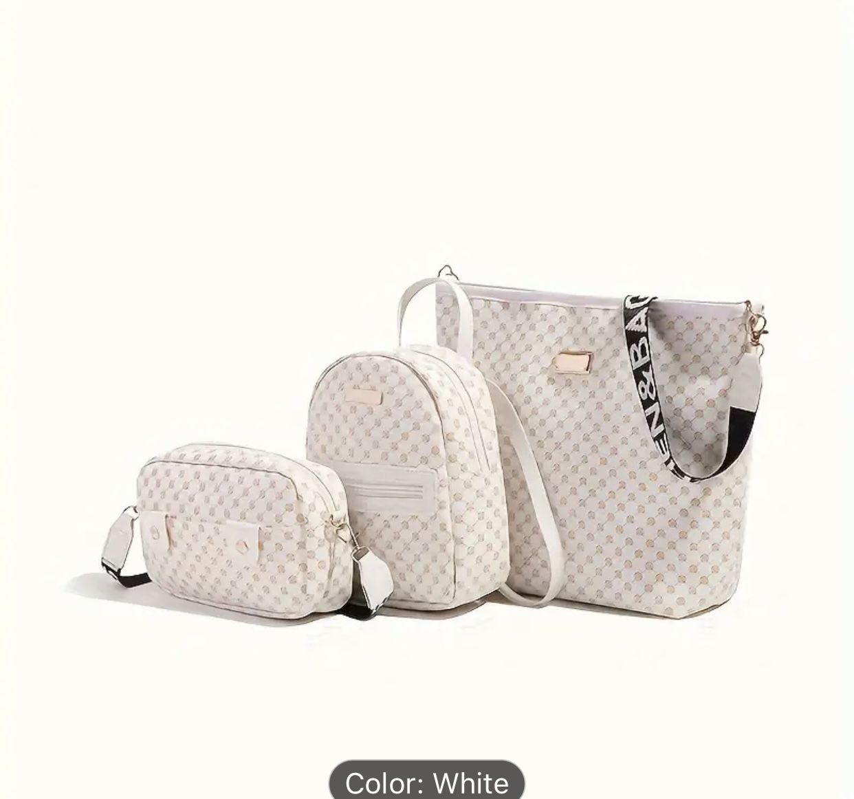 Chic 3pcs Girls's Bag Set: Polka Dot Print Tote, Boston Handbag & Crossbody - Lightweight Faux Leather with Adjustable Strap for Daily Commute